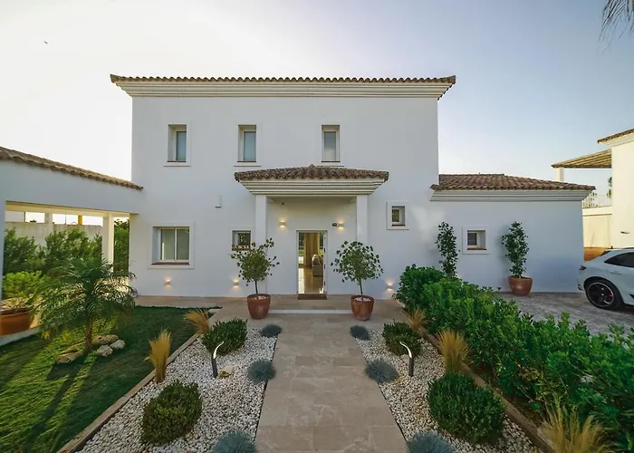 Villa Girasol配有游泳池 和花园等便利设施,设有4间卧室. 它距离赫雷斯德拉弗龙特拉机场70公里,距离Centro de interpretación del cádiz prehistórico有1.3公里.